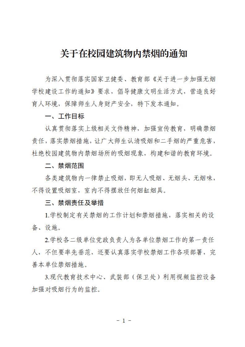 关于在校园建筑物内禁烟的通知